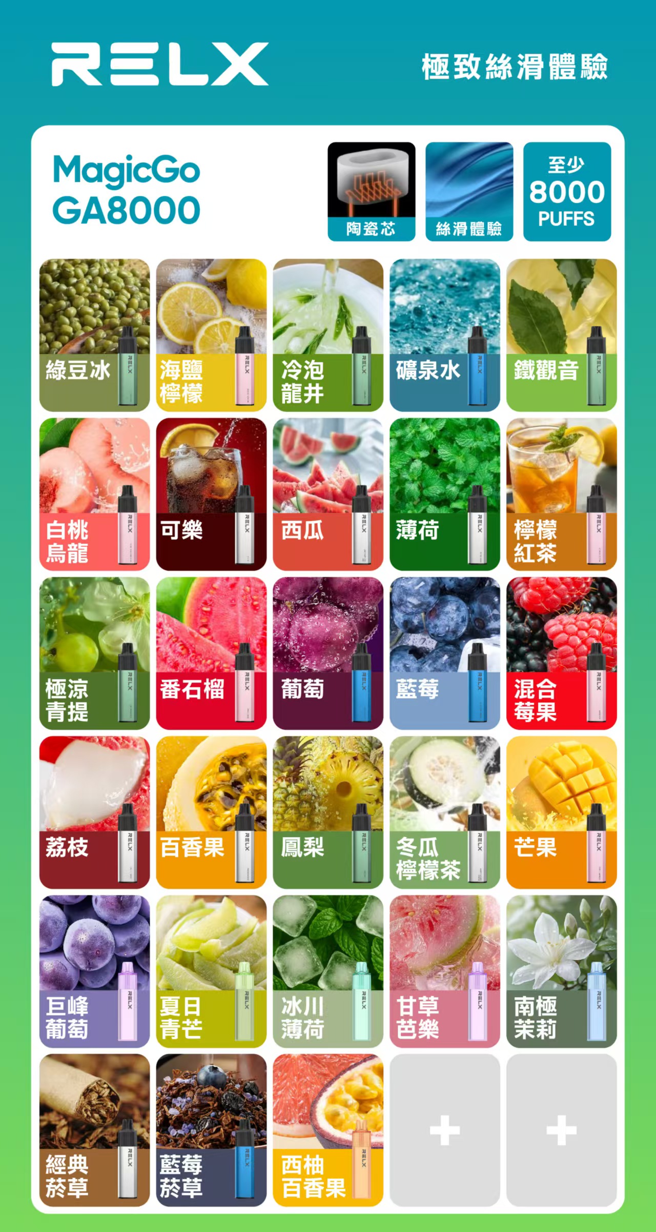 RELX悅刻GA8000 陶瓷霧化芯 口感更順滑 ----------- 有油就有電 透明油艙 油量透明 餘量一目了然